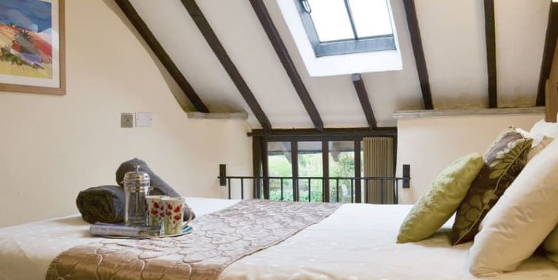 Both Hay Barn (UK10340) and Tithe Barn (ref UK10339) have their own private hot tubs, for which extra towels are provided. All properties have large private gardens, which open onto a shared field with play facilities for the children and plenty of space to let off steam. Guests are also free to enjoy the owners 26 acres of farmland that surround the properties and which are home to the owner’s horses and sheep. On a chilly evening, why not curl up beside the cosy wood burner with a good book or enjoy a film together?