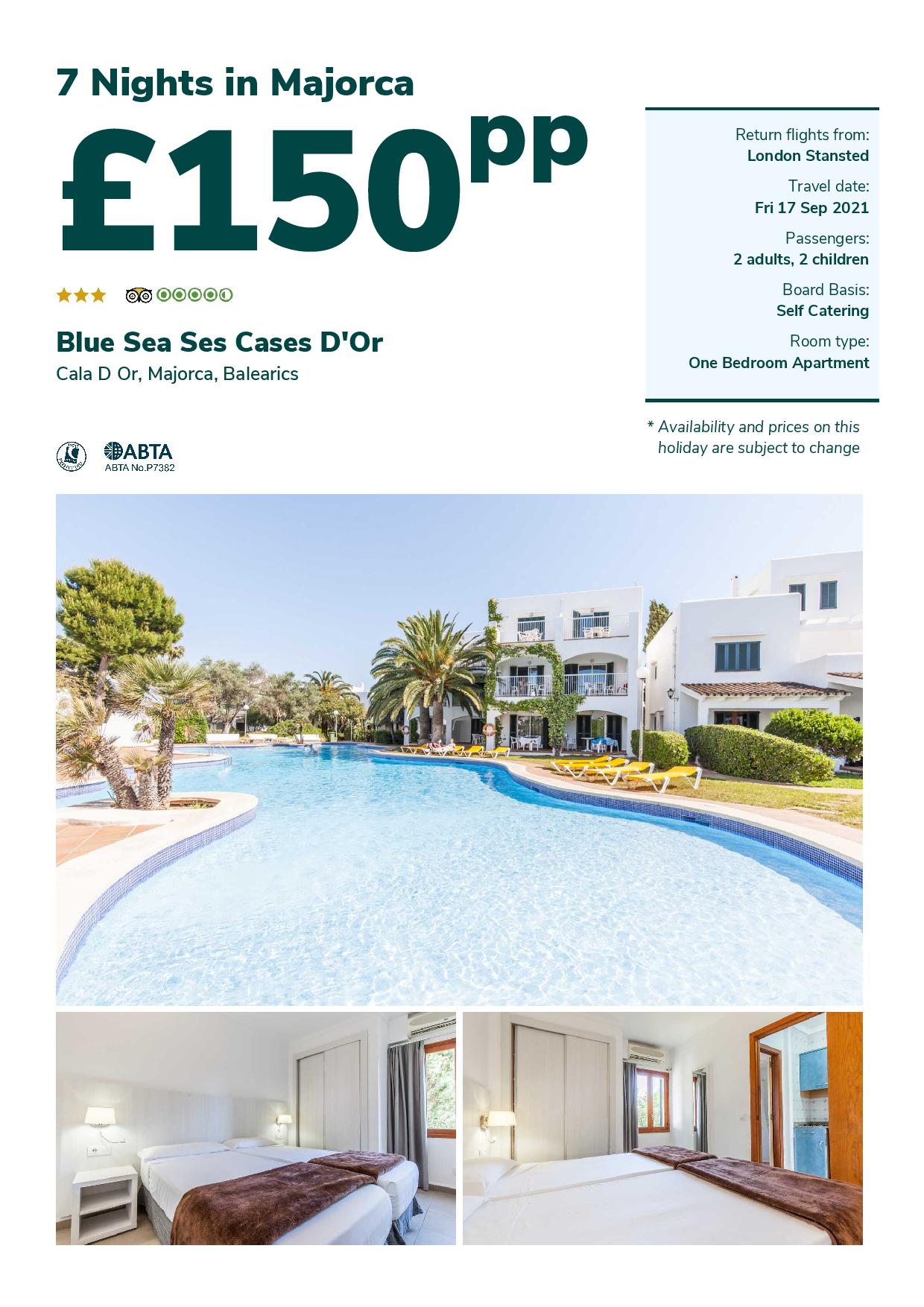 Family of 4 / 7 nights Self Catering from £150pp
