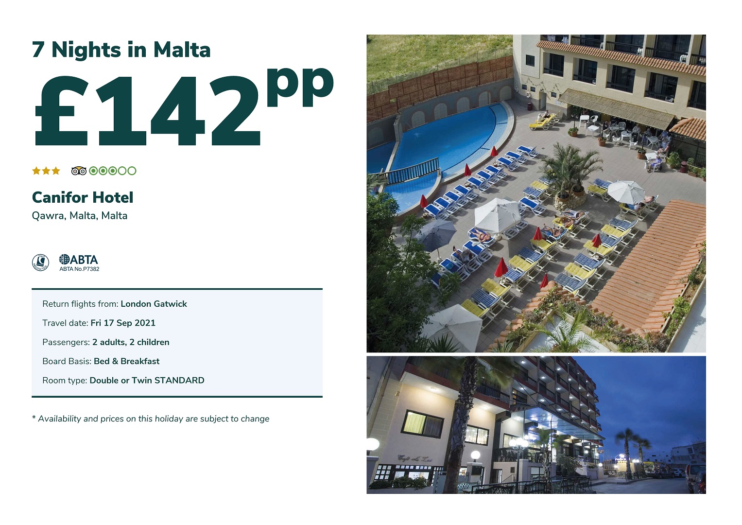 Family of 4 / 7 nights B&B from 142pp