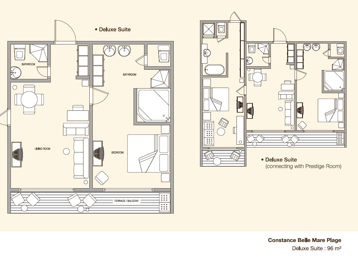 Similarly equipped to the Junior Suites, the Deluxe Suites also have a separate living room with an extra