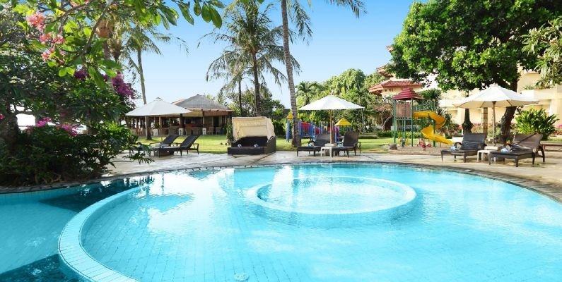Set on the southern part of Bali, Tanjung Benoa – Nusa Dua resort area, Grand Mirage Resort and Thalasso Bali spa is blessed with a hypnotizing view of Indian Ocean. This Bali resort is 25 minutes away from Ngurah Rai International Airport. The resort is also within walking distance of numerous shopping outlets, convenience stores and merchandise shops to choose from. With its pristine private beach, this 5 star beachfront Bali resort offers wonderful experiences of spending leisure time in a luxury hotel. With all the luxury inclusions, Grand Mirage Resort and Thalasso Bali Spa is definitely worth listing on every Bali itinerary!